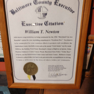 BALTIMORE COUNTY EXECUTIVE – EXECUTIVE CITATION acknowledgement of “hard work and noteworthy accomplishments in striving to make a difference in the lives of others”.